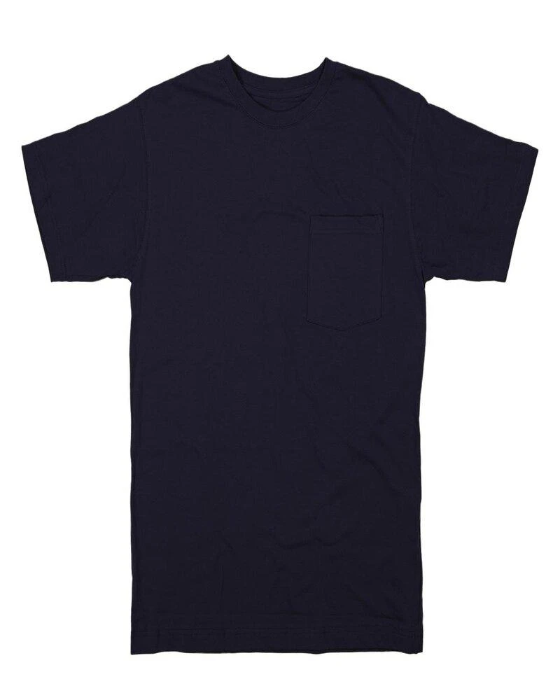 6 oz., 100% cotton jersey; Pre-shrunk, ring spun cotton; Relaxed fit; Chest pocket; Double-needle stitched on main seams; Tagless label; Taped neck seam for comfort