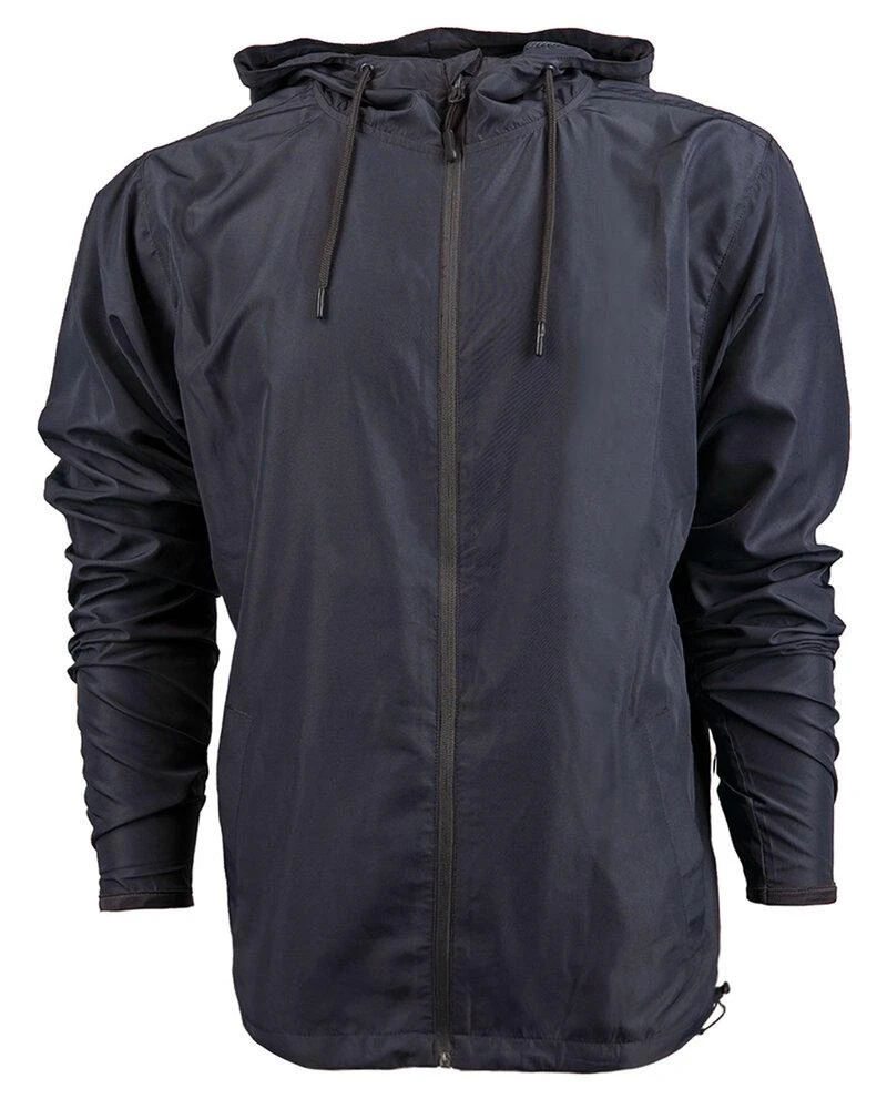 82 GSM, 100%polyester; Exterior water-resistant coating; Matte finish eyelets and zippers; Rubber zipper pull tab, reversed zipper tape; Fine mesh hood liner; Scuba neck, elastic binding on cuff; Welt pockets with mesh pocket bags; Storm flap cover on top of zipper to protect the neck; Toggle at waistband, locker loop in center neck