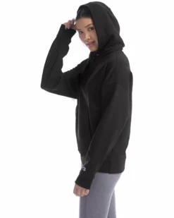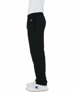 12 oz., 82% cotton/18% polyester fleece; Oxford Gray: 78% cotton/22% polyester; side pockets; back right side pocket; ribbed waistband with cotton drawcord; ribbed cuffs; ribbed gusset; champion “C” logo at left hip