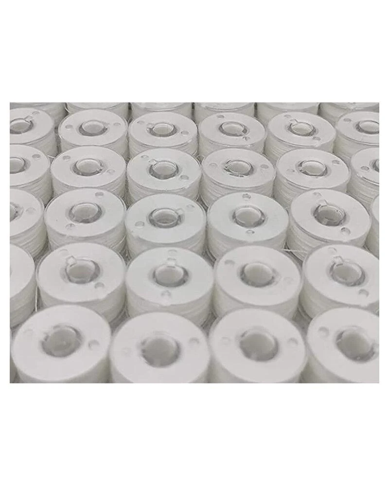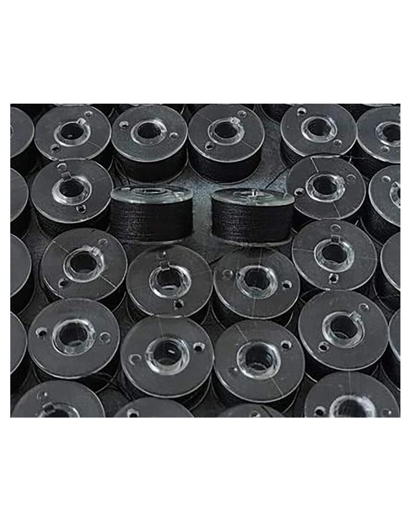 Pre-wound bobbin with cardboard or plastic sides; Continuous filament polyester minimizes lint build up; Allows for consistent tension sewing; 120 yard per bobbin; Packed 1 gross (144 bobbins) per box