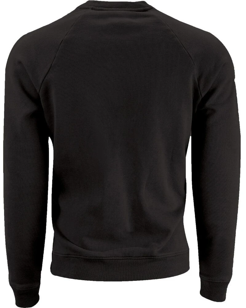 7.75 oz. french terry; 60% organic cotton, 40% recycled polyester; Raglan sleeve construction; Ribbed cuff; External clamp label front left bottom hem; Tear away label