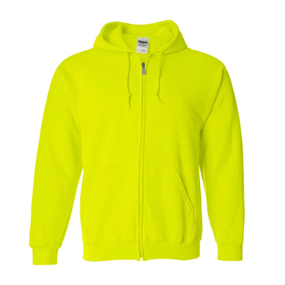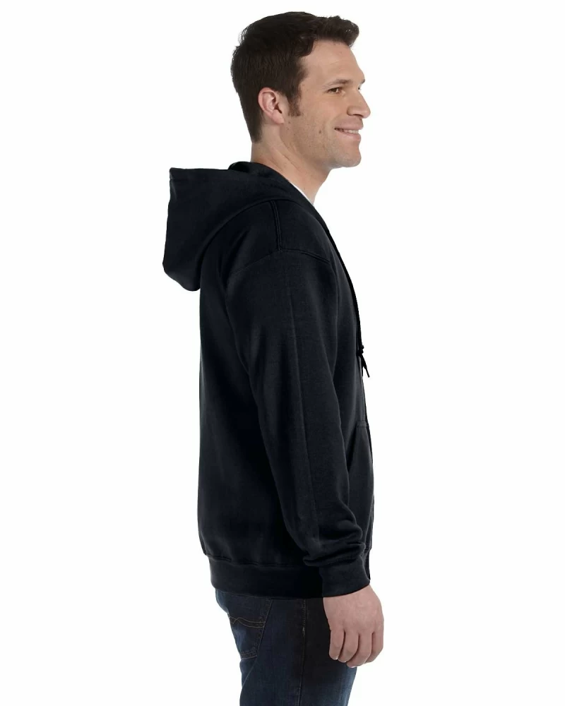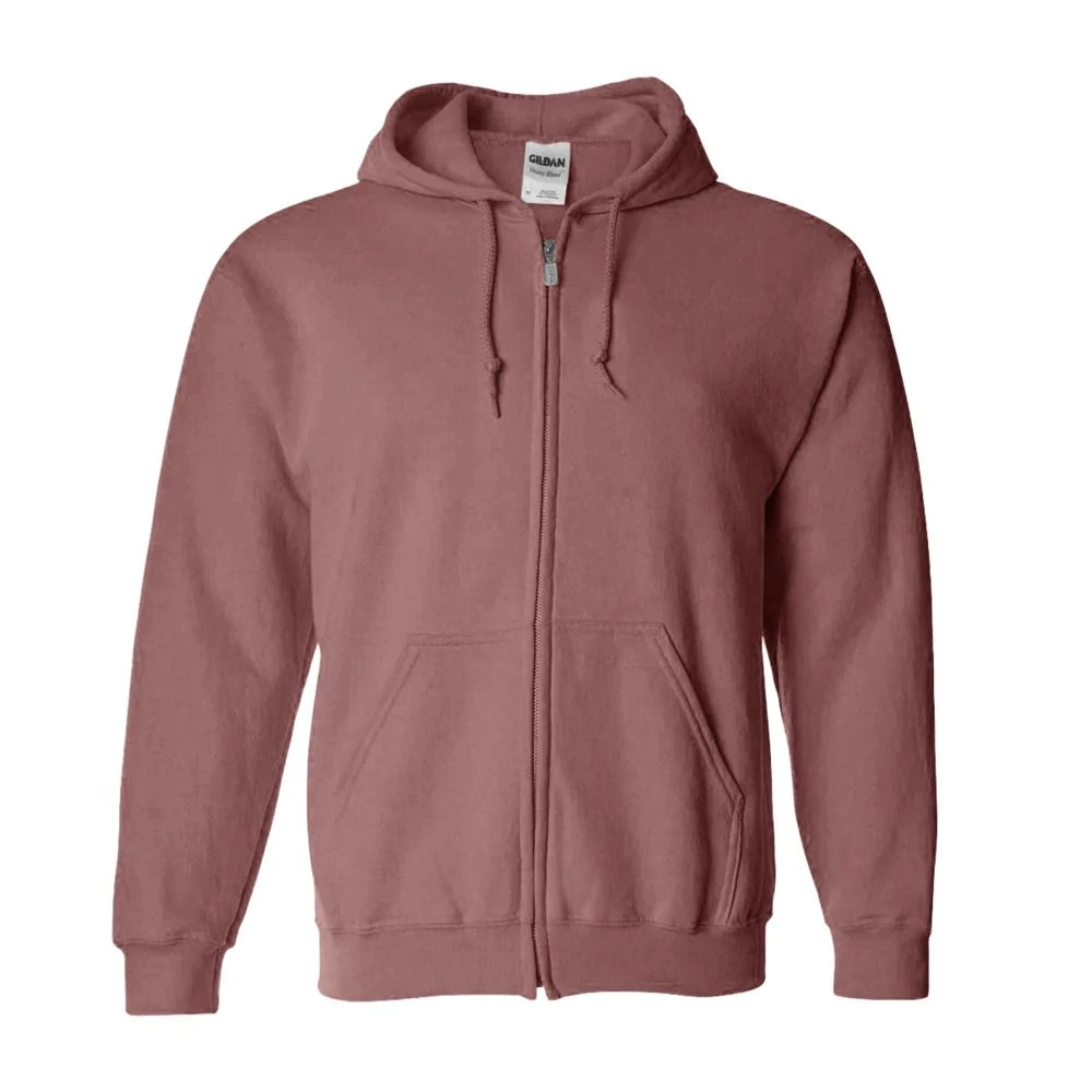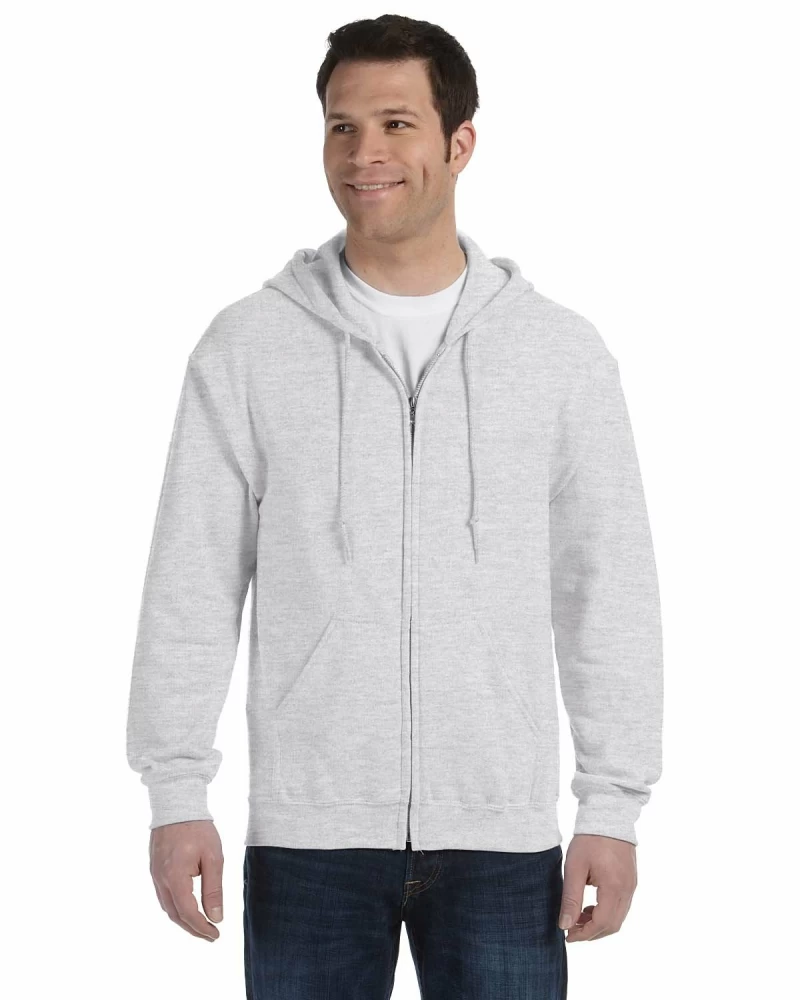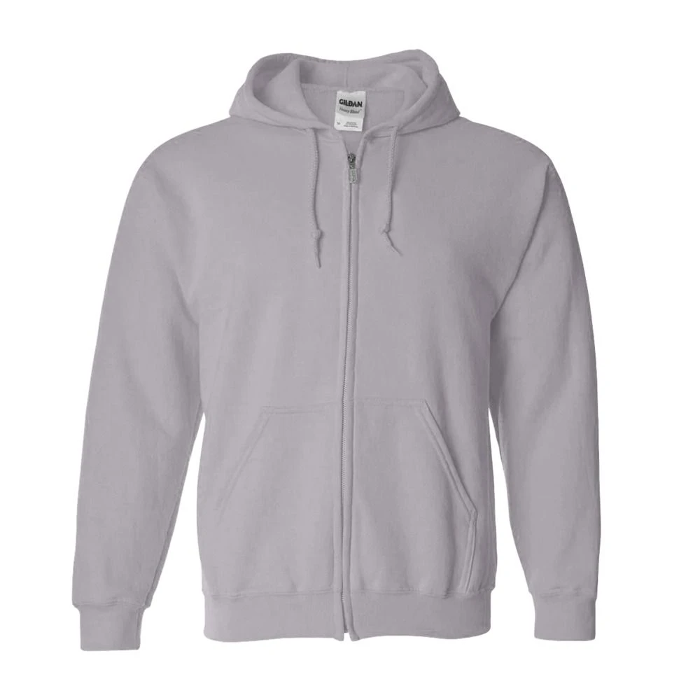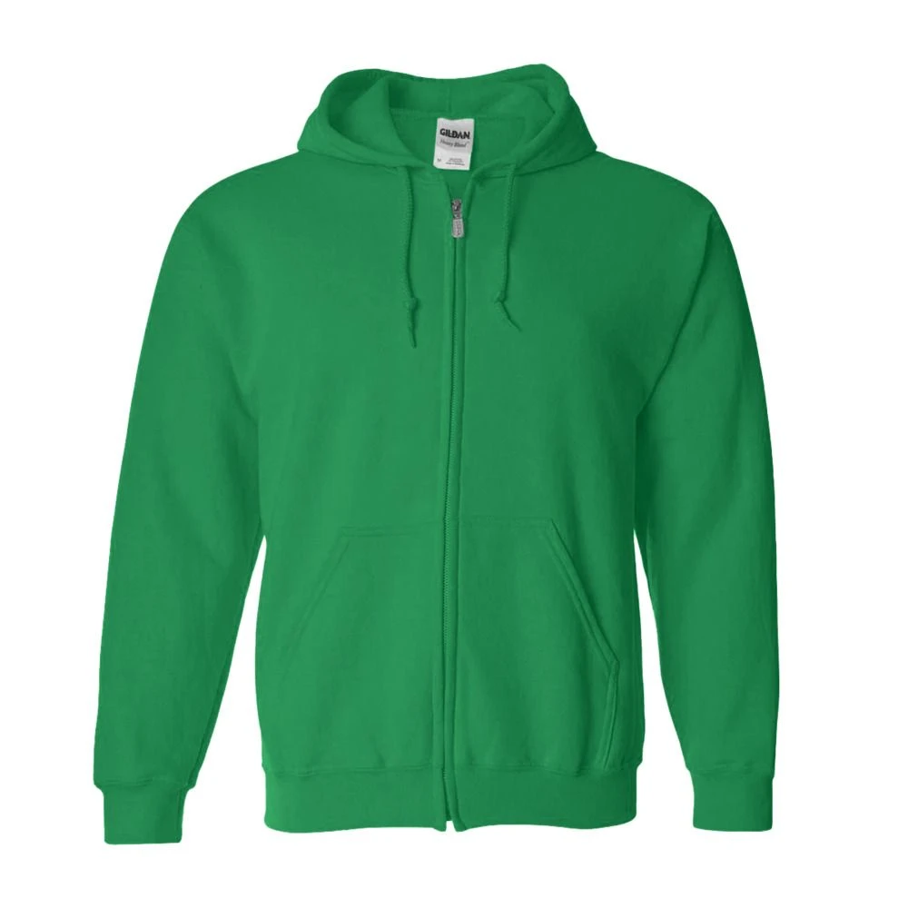 The Gildan 18600 is a Heavy Blend Full-Zip Hooded Sweatshirt made of a 50/50 cotton/polyester. It has reduced pilling and softer air-jet spun yarn, double-needle stitched armholes, cuffs and waistband. It also features a split front pouch pocket and a metal kissing zipper with 1×1 athletic rib-knit cuffs and waistband with spandex.