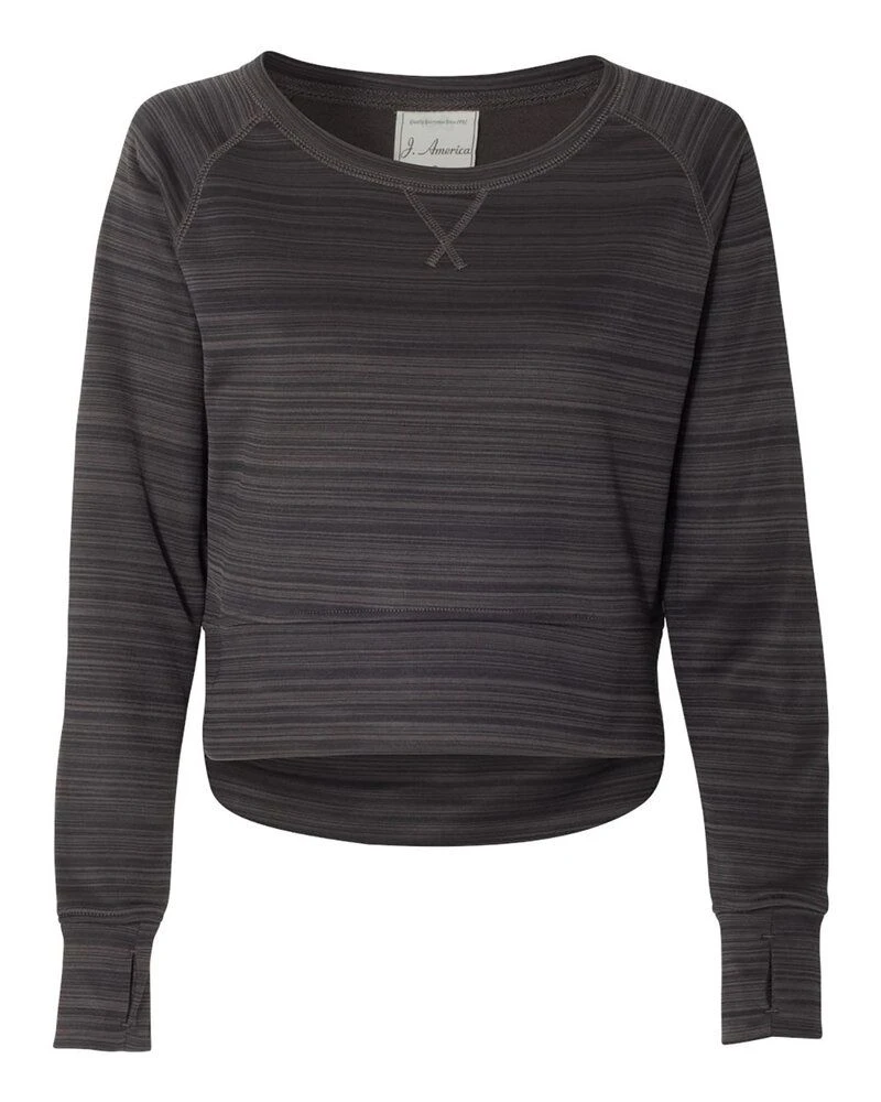 J. America JA8663 – Ladies Odyssey Striped Poly Fleece Hi-Lo Crew