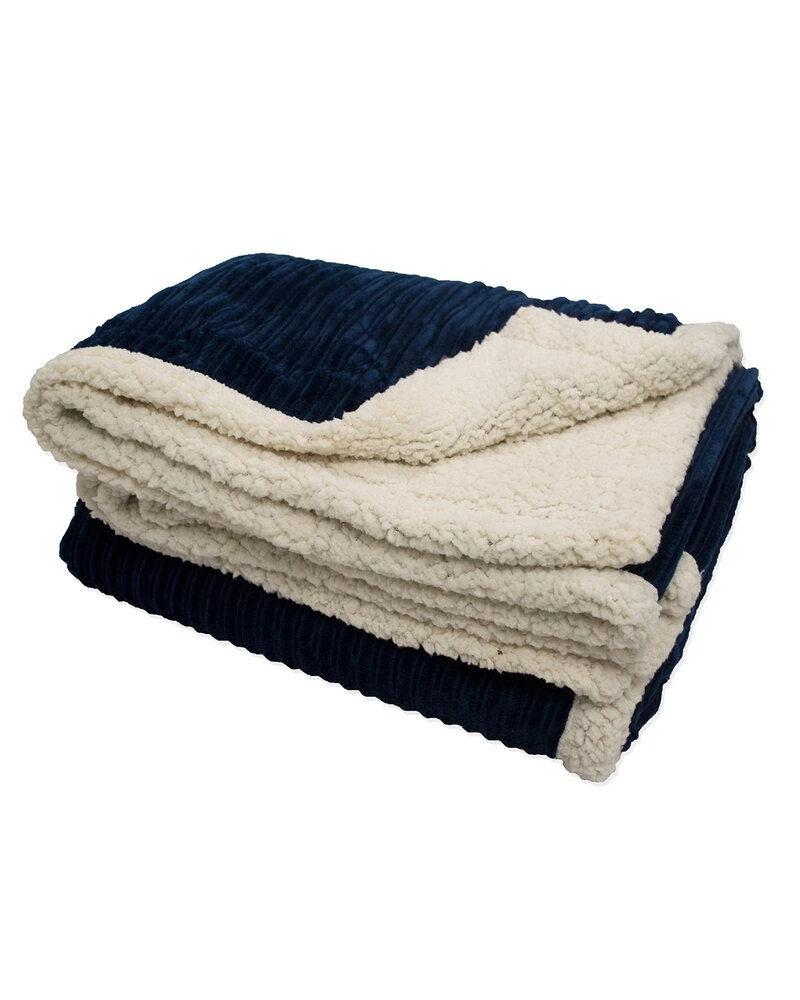 100% polyester; Packaging: Vinyl zippered bag; Reversed with soft, faux lambswool; Wide wale corduroy has channels that run vertically; Casual and contemporary; 50″ x 60″; Machine washable.