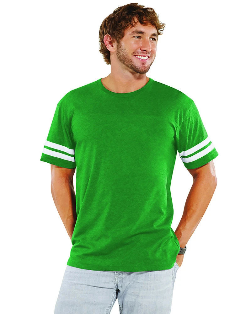 Whether you’re on the field, working out at the gym, or hanging out with friends, you’ll love your Vintage Football T-Shirt by L.A.T. Apparel. Made from 60% combed ringspun cotton and 40% polyester (Black/White and White/Black are 100% combed ringspun cotton), it provides superior comfort and a stylish, vintage look so you’ll appear casual and fashionable at the same time. Additional features you’ll enjoy include 30 singles for extreme softness, taped shoulder-to-shoulder with EasyTear™ label, two white stripes on sleeves, front yoke, and double-needle hem sleeves and bottom. This t-shirt comes in nine bold colours, each with two white stripes. Available in sizes S to 3XL. This model is perfect for creating custom baseball and softball tees for your team thanks to its superior screen printing quality.